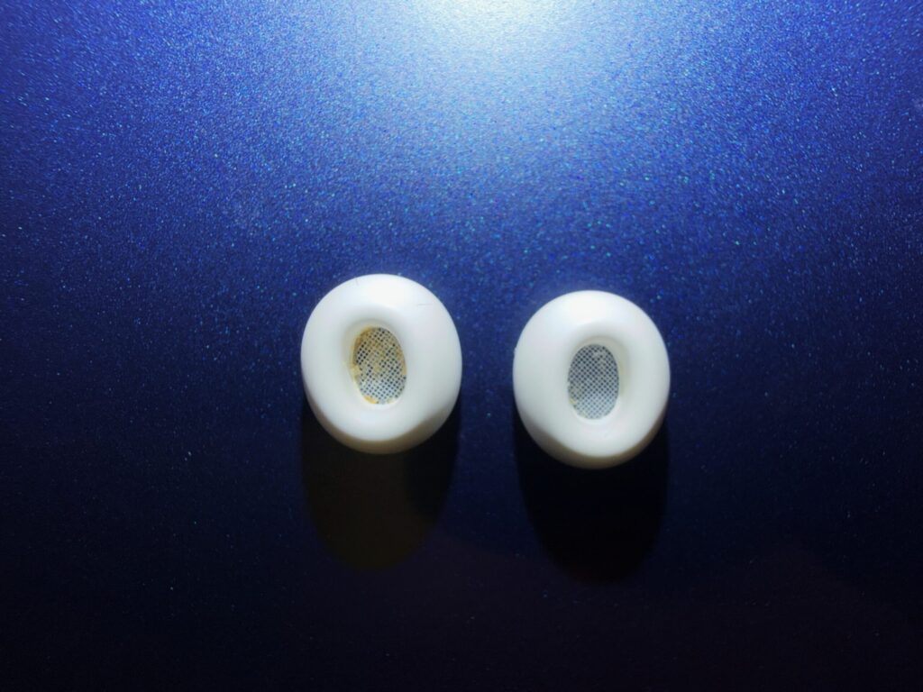 メッシュ部分の耳垢詰まりもノイキャン性能に影響するという情報もある。掃除をサボっている自覚があるので、これも原因の一つかもしれない。